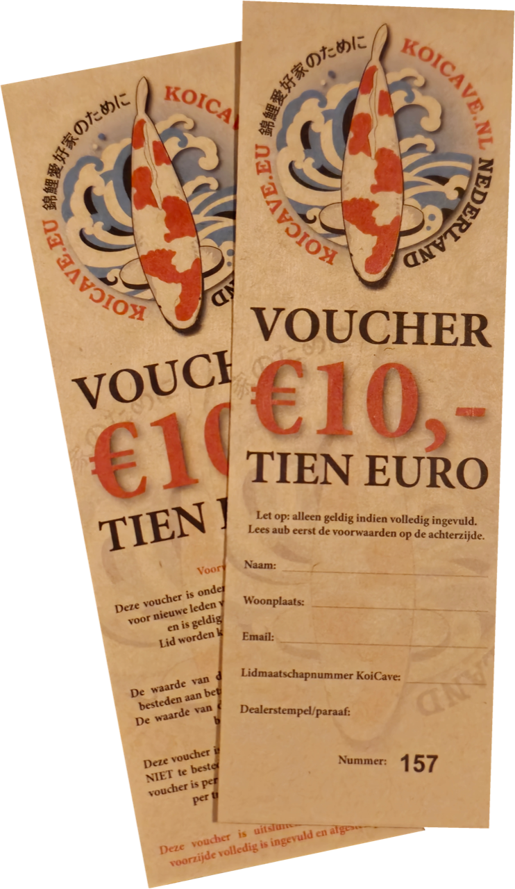 Send an email to leden@koicave.nl. Once approved, you’ll receive a payment request for the €10 and your membership card will be mailed to your home address. You’ll also receive the €10 discount voucher.