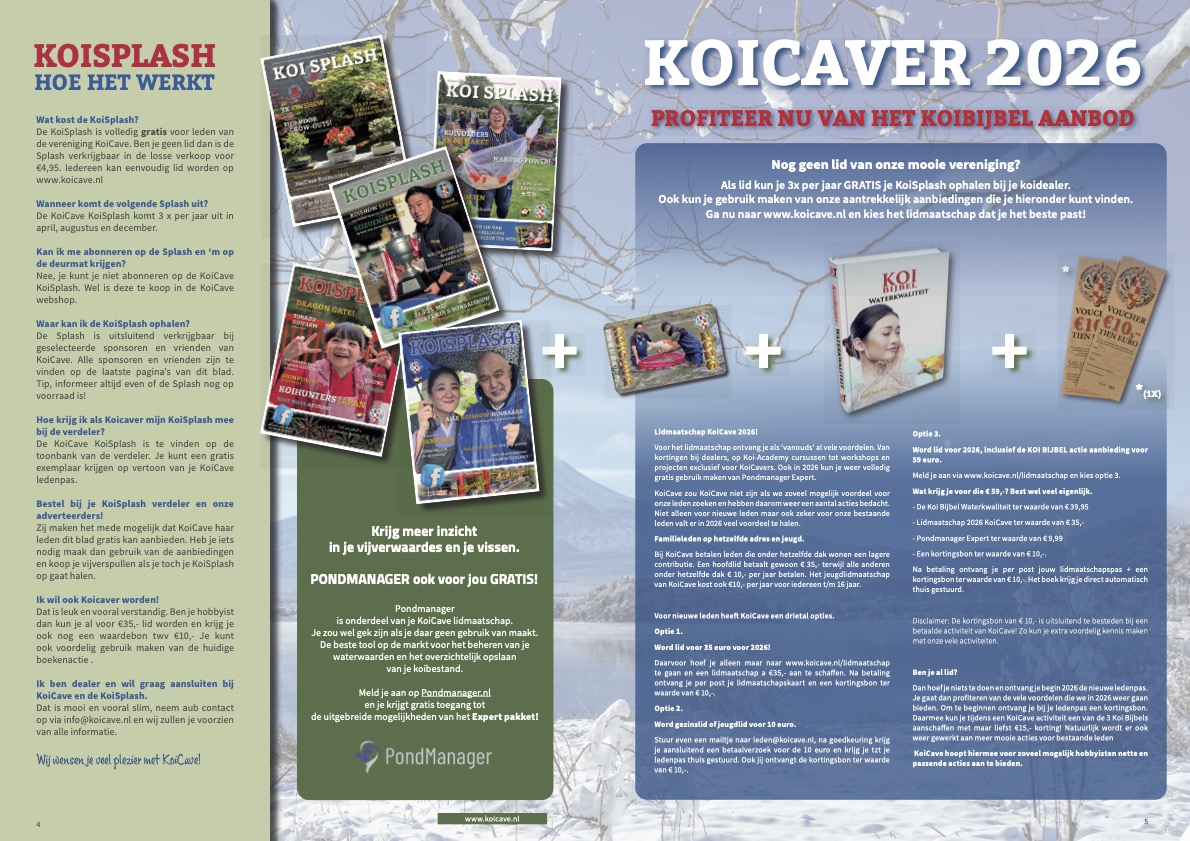 As always, you’ll receive many benefits as part of your membership. From discounts at dealers and on Koi Academy courses to workshops and projects exclusively for KoiCavers. You can also use PondManager Expert completely free of charge in 2025 and 2026.